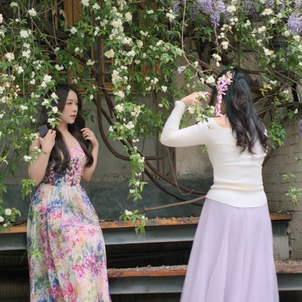 在春夏之交,满墙的花和葱浓绿意,非常适合拍照打卡。